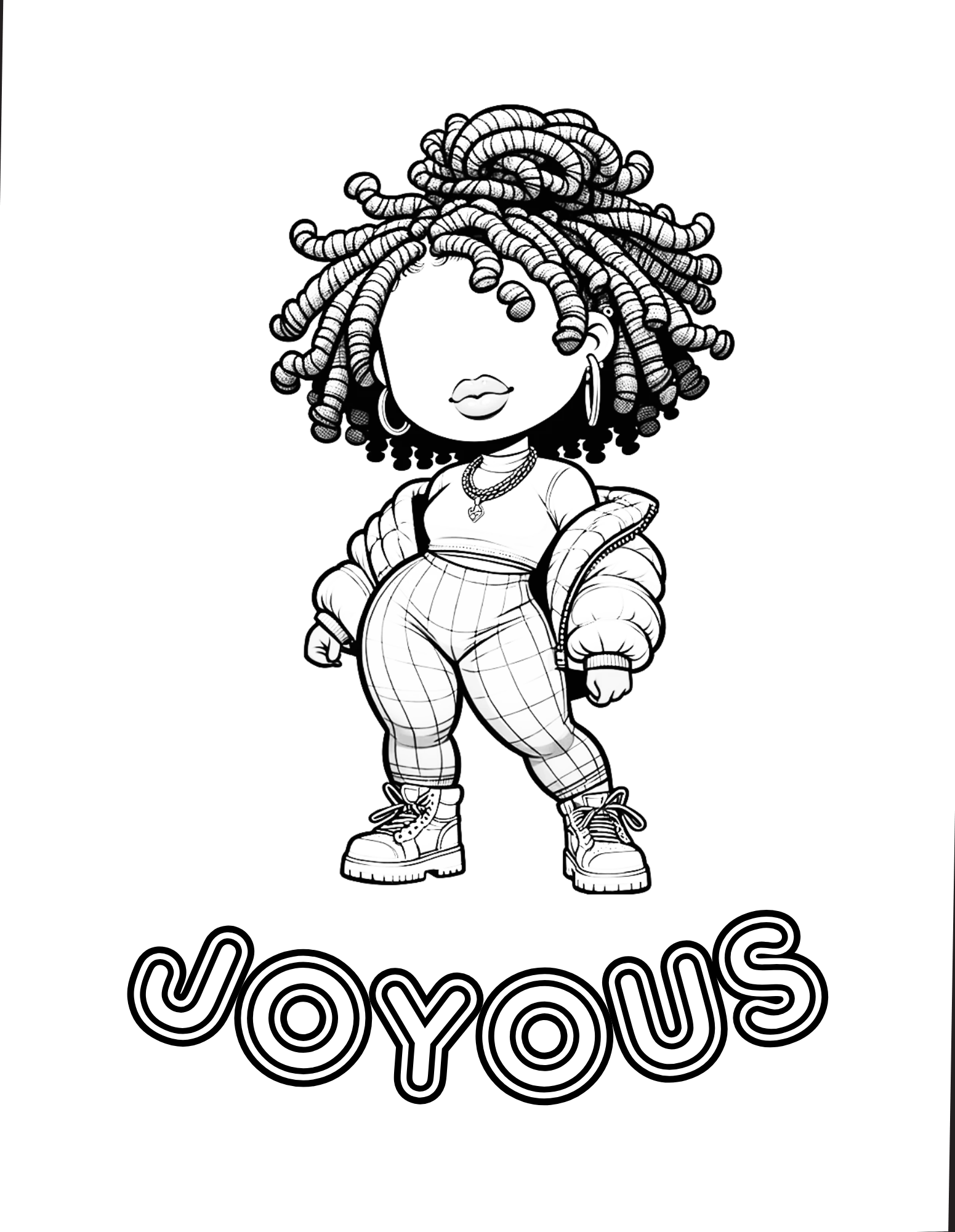 Unlock your creativity and embrace self-expression with Canvas of Her: A Melanated Cocoa Cuties Coloring Book For Black Girls. This 8.5 x 11-inch paperback offers 47 pages of faceless illustrations, letting you color Black girls in various unique ways. Dive into 3 enjoyable word searches and solve 10 riddles that reveal positive, empowering words. The 10 "Happy Thoughts" pages provide a space for your reflections, happy memories, or notes on creative inspirations. Perfect for Black girls and anyone who loves uplifting art, this coloring book is a joyful journey of discovery, creativity, and positivity.