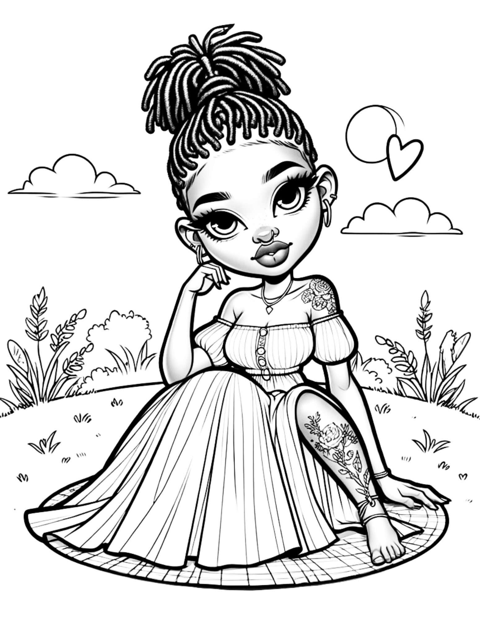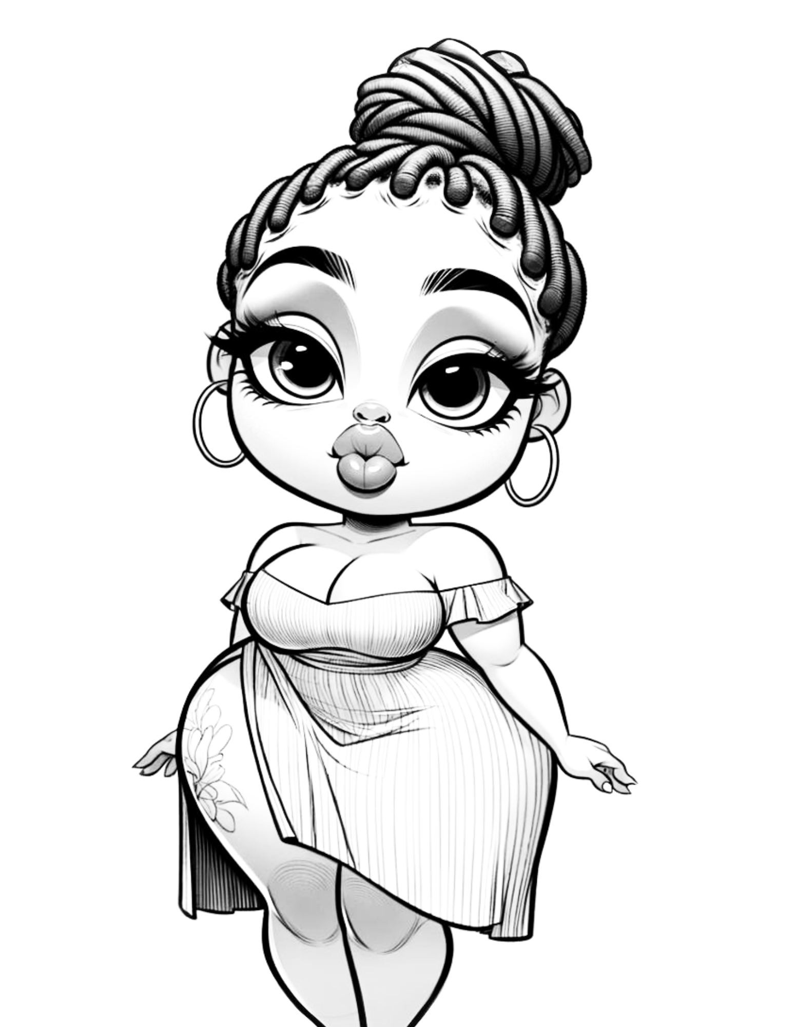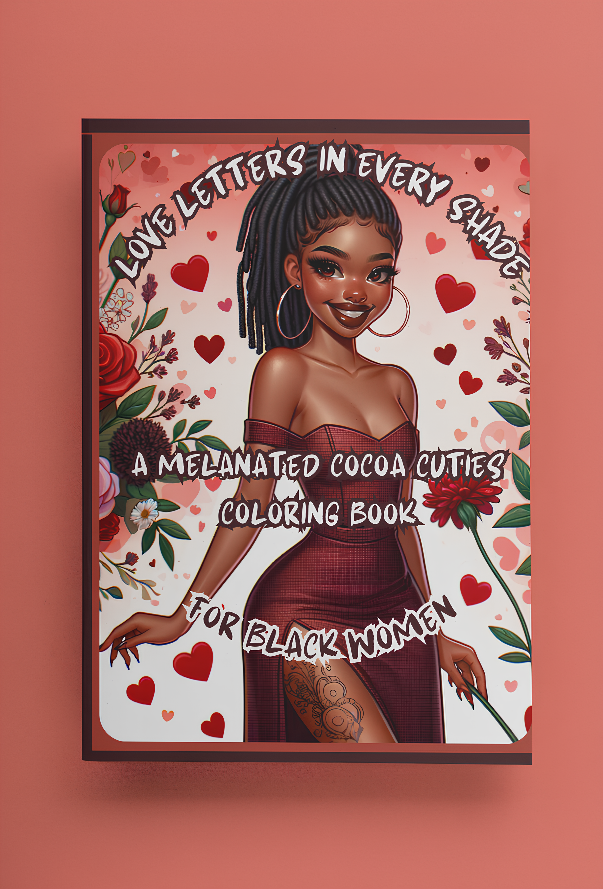 Celebrate the essence of Black womanhood with 'Love Letters In Every Shade: A Melanated Cocoa Cuties Coloring Book.' This exquisite 102-page paperback coloring book, measuring 8.5 x 11 inches, showcases graceful Black women in their signature off-shoulder midi dresses, each adorned with captivating thigh tattoos. Surrounded by hearts, flowers, or rose petals, these illustrations come to life with your creative touch. Within these pages, you'll also discover love letters tailored to Black women, serving as a reminder of their unwavering strength, beauty, bravery, and leadership.