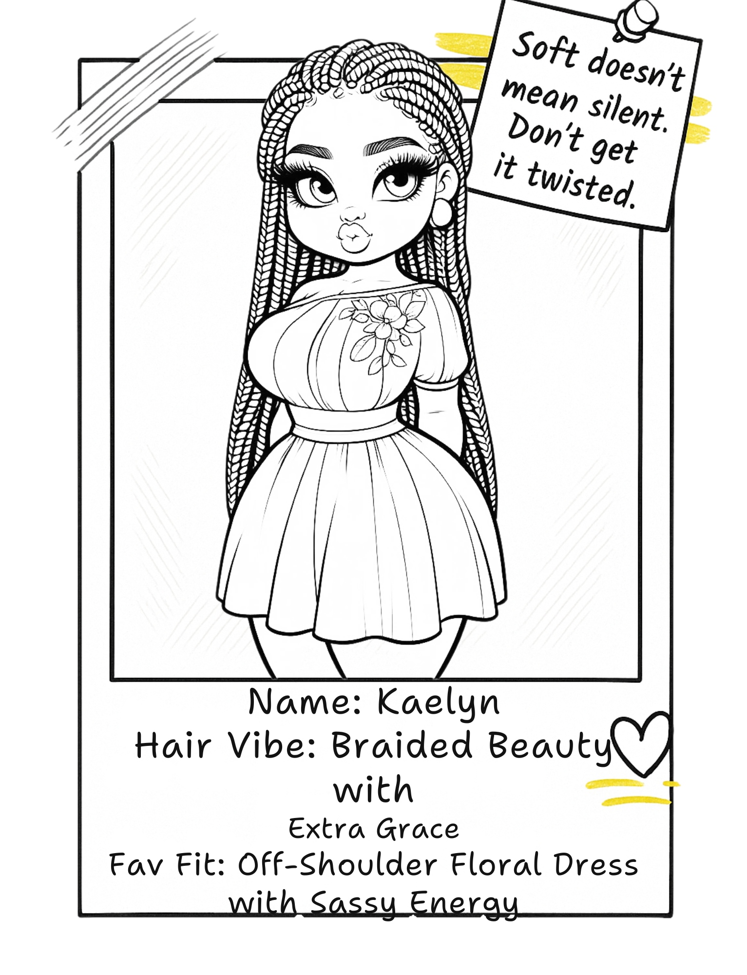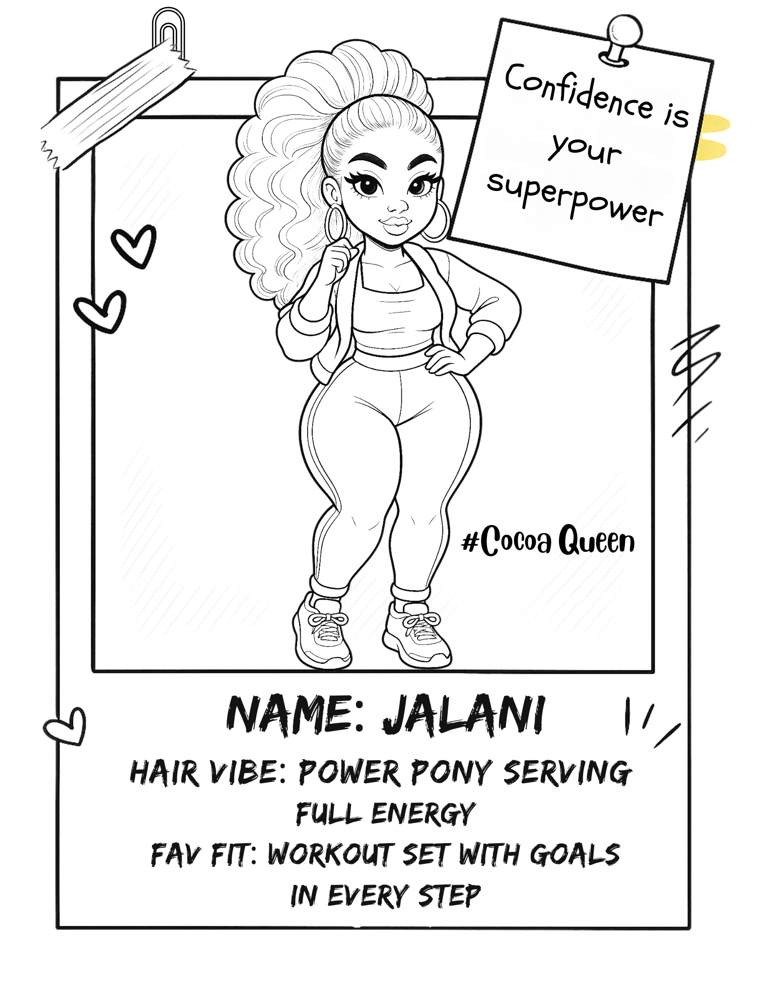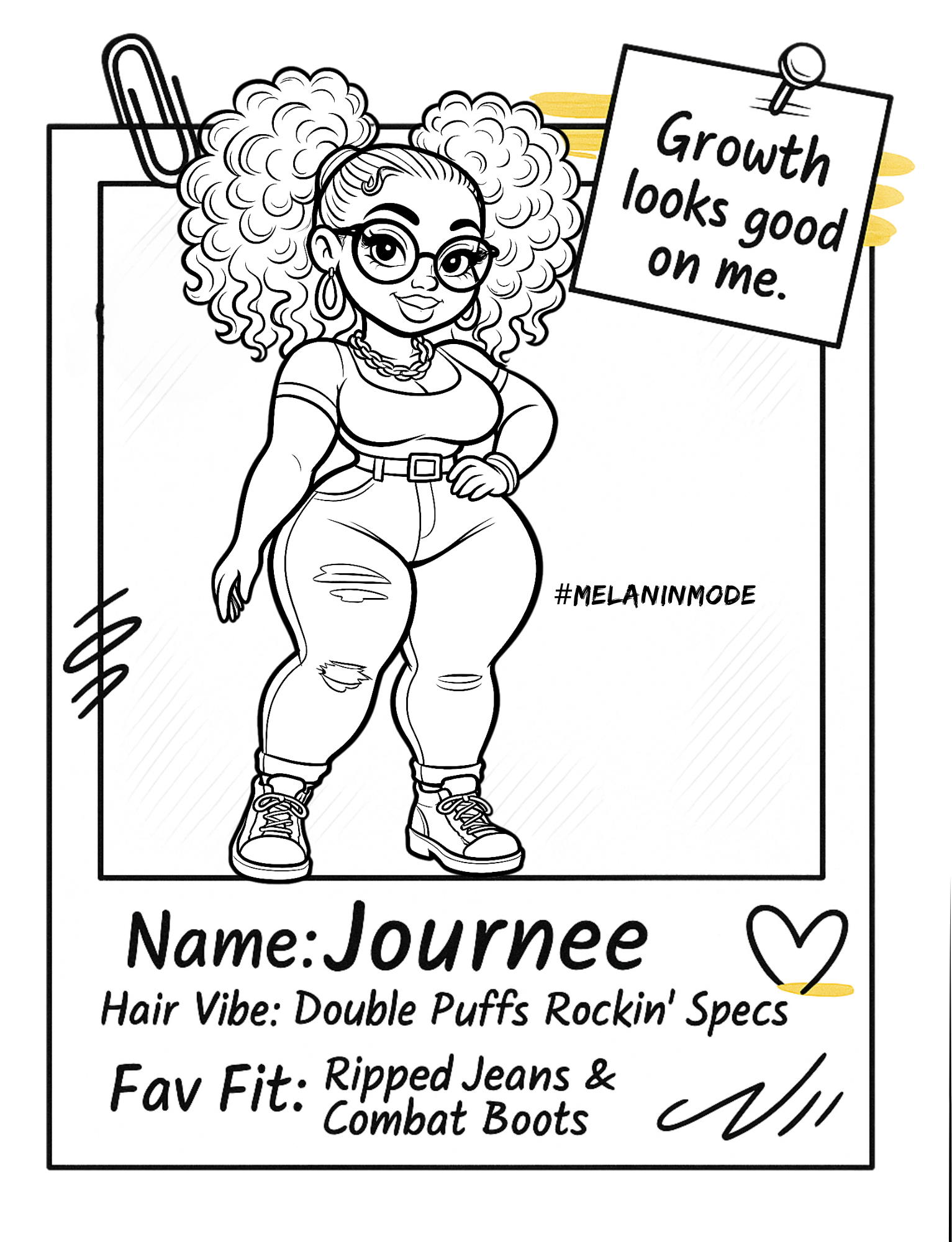 Discover the magic of artistic expression through the pages of the Melanated Cocoa Cuties Coloring Book. Sized at 8.5 x 11 inches, this paperback gem boasts 113 pages brimming with captivating illustrations. It's a delightful journey into the world of coloring pages, aesthetic coloring pages, adult coloring pages, cute coloring pages, black women art, and coloring book art. Unleash your inner artist as you celebrate the radiant beauty and unique style of Black women with each stroke of your coloring tools.