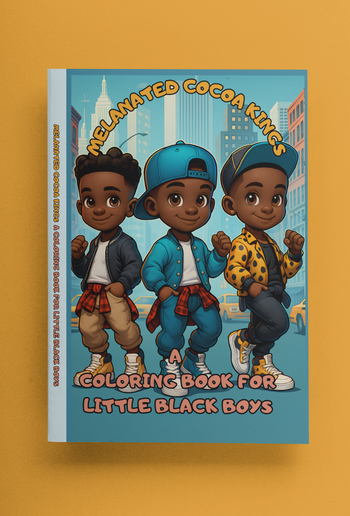 Dive into a world of adventure and creativity with "Melanated Cocoa Kings: A Coloring Book For Little Black Boys." This 123-page coloring book is filled with captivating digital illustrations, taking young readers on wild safaris, visits to petting zoos, feeding farm animals, performing magic tricks, and playing sports. Measuring 8.5 x 11 inches, it's the perfect size for little hands to explore. The glossy paperback cover adds durability and a touch of elegance. But that's not all; this coloring book also includes uplifting positive affirmations to empower our little black boys to grow up strong and encouraged. It's more than just coloring; it's a journey of self-discovery and inspiration.