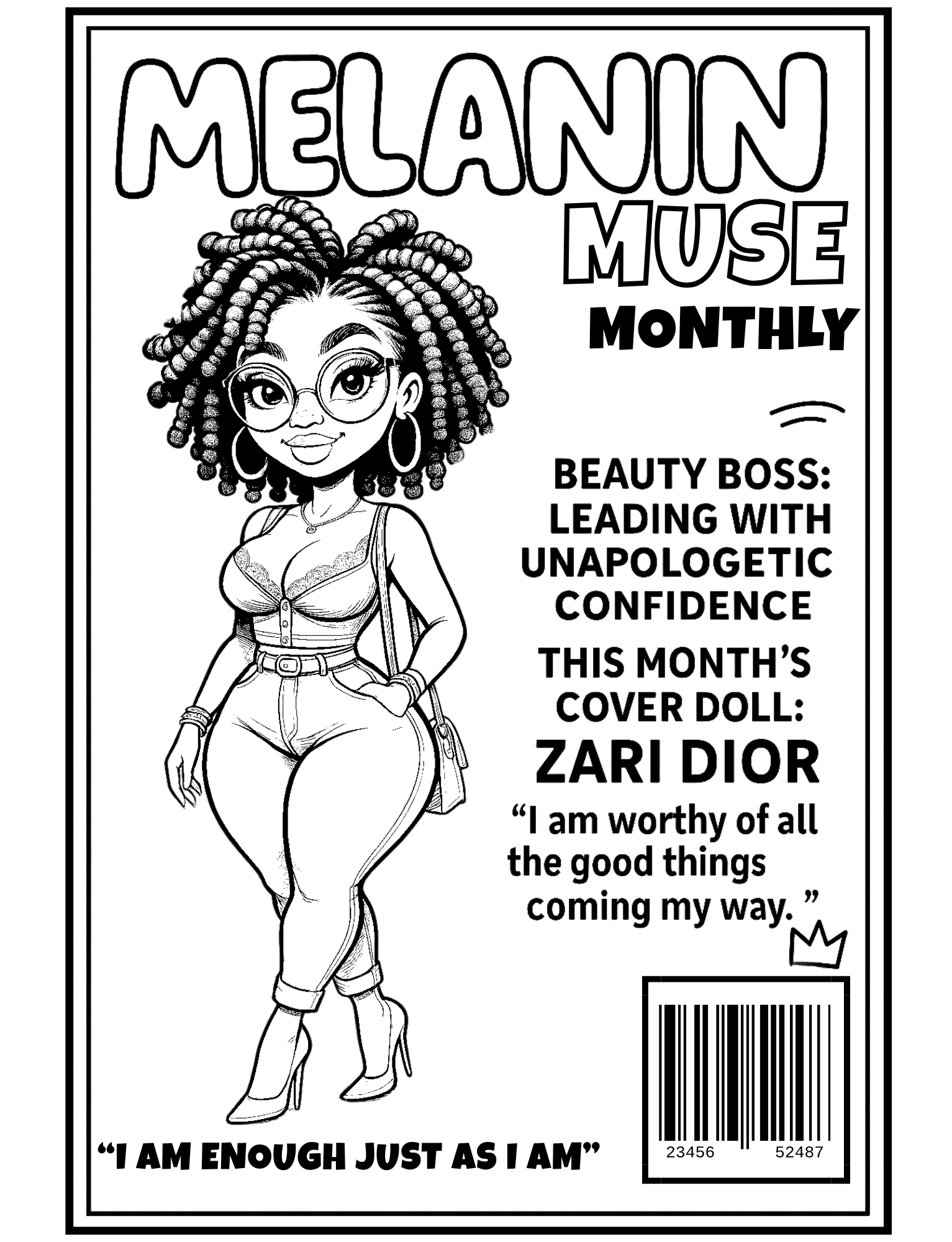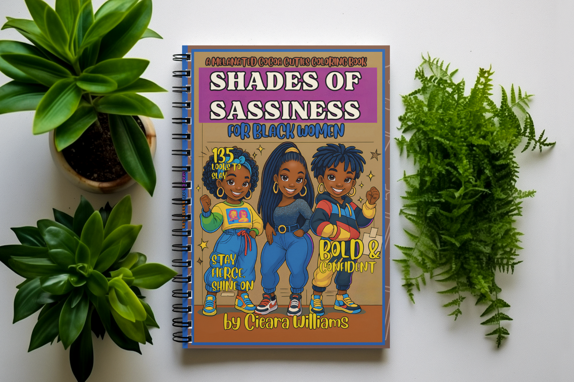 Join a journey of self-love and empowerment with Shades Of Sassiness, a glossy 8.5" × 11" coloring book filled with striking illustrations of confident Black women.